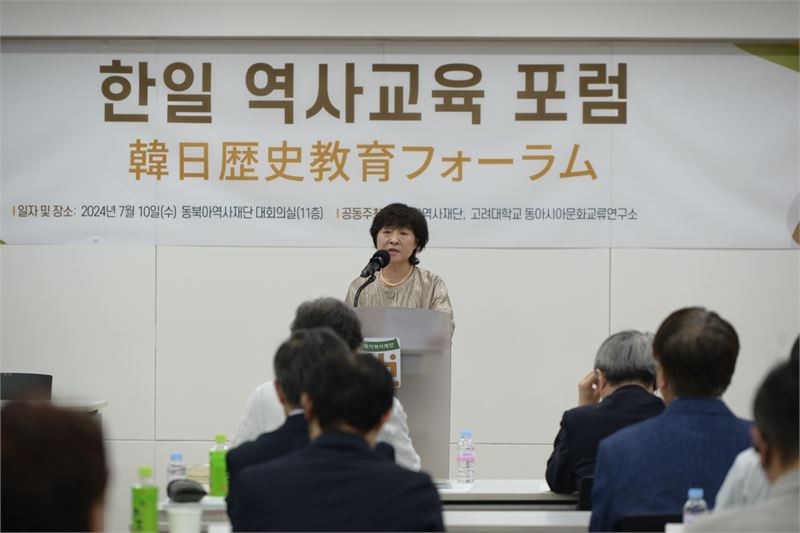 금일 7월 10일(수) 동북아역사재단(이사장 박지향)은 고려대학교 동아시아문화교류연구소와 공동으로 재단 대회의실에서 "한일 역사교육 포럼"을 개최했다. 이번 포럼에는 일본과 한국의 역사 교과서 집필진 총 16명이 함께 자리했다.