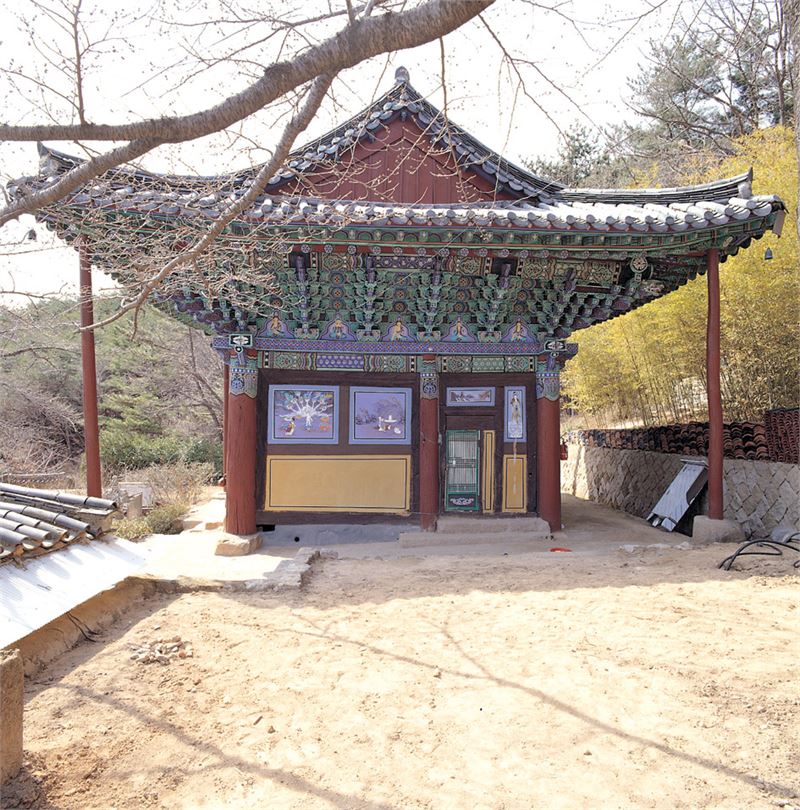 앞면 1칸·옆면 2칸 규모이지만 앞면 1칸 사이에 사각형의 사이기둥을 세워 3칸 형식을 띠고 있는 것이 독특하다.