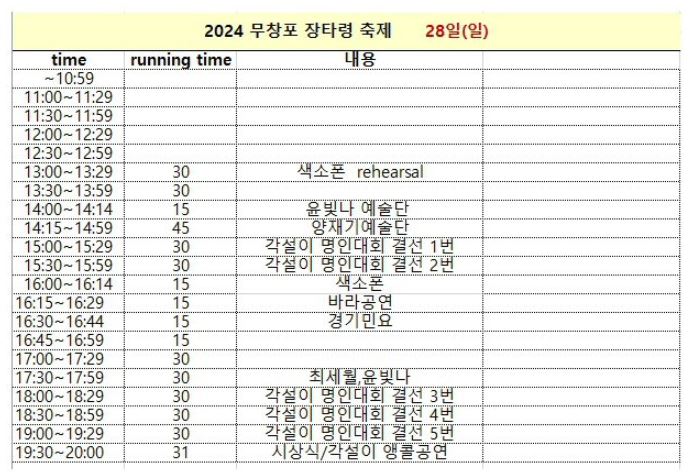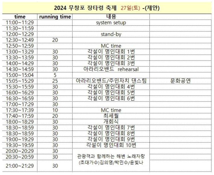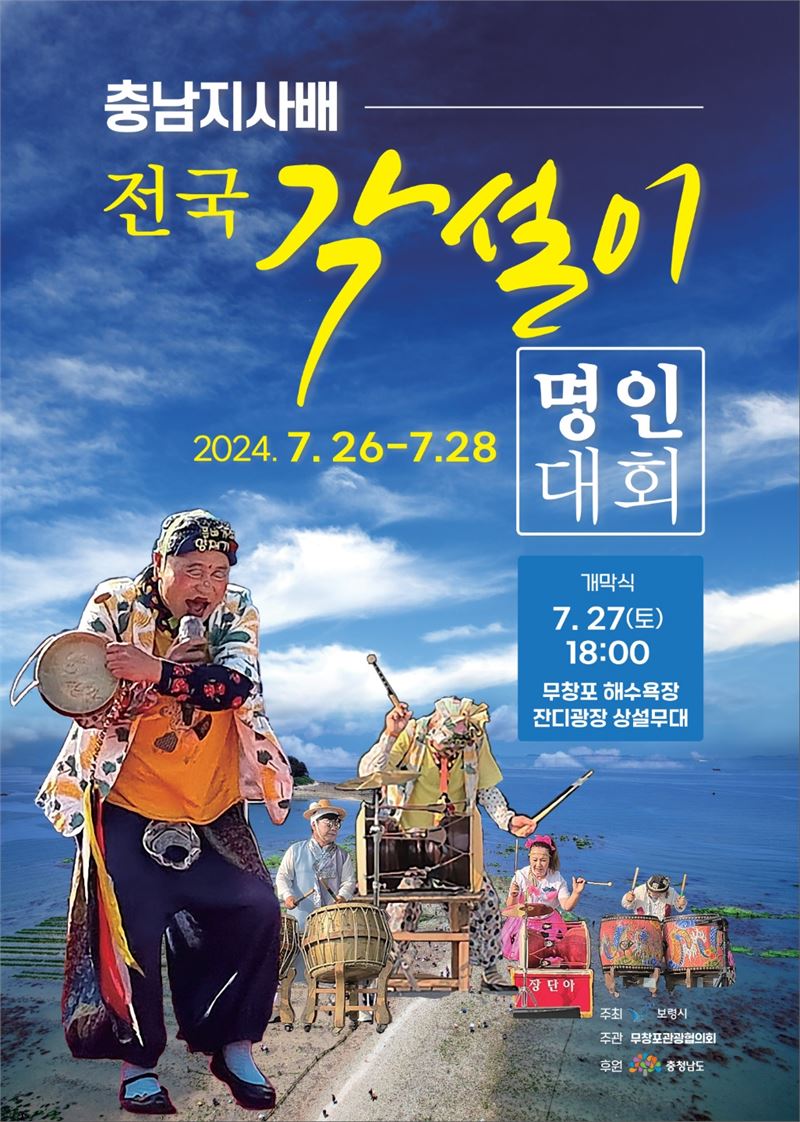 "얼~씨구 씨구 들어간다!" ‘충남지사배 전국각설이 명인대회’와 ‘2024 무창포 장타령 축제’가 오는 26일(금)~28일(일)까지 2박3일 일정으로 충남 보령 무창포해수욕장 잔디광장 상설무대에서 보령의 BTS 양재기예술단등 전국에서 내노라 하는 전국 품바 각설이 10개 팀이 예선을 걸쳐 명인대회를 펼친다고 밝혔다.