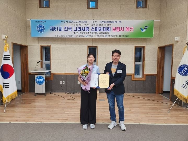 이번 전국 나라사랑 스피치 대회 보령시예선은 초중고, 군인, 시민 등 연사 11명이 참여해 열띤 경연을 펼친 결과, 최우수상(보령시장상)에 충남해양과학고등학교 2학년 한도희 학생이 수상하였으며, 우수상(보령시의회의장상)으로 육군제8361부대2대대 최규진 상병, 대천동대초등학교 3학년 허윤서 학생. 우수상(보령교육지원청교육장상)으로 보령시민 백순희님, 웅천중학교 1학년 정소이 학생이 수상하였다.