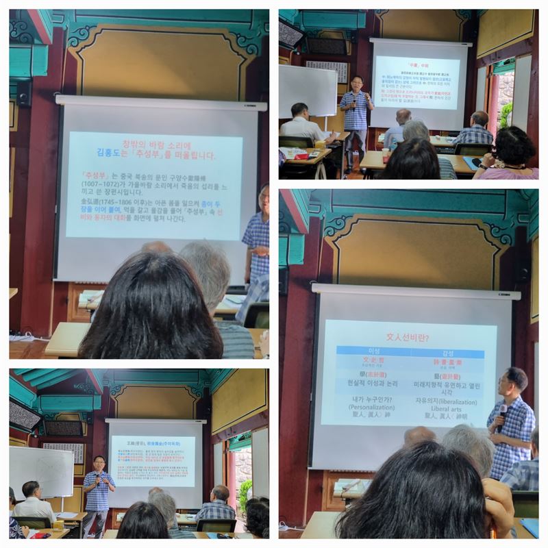 유교아카데미 마지막 강의에 집중하는 수강생들과 '조선후기 서예와 그림 감상 여행'이라는 주제로 열강 중인 임창섭 강사