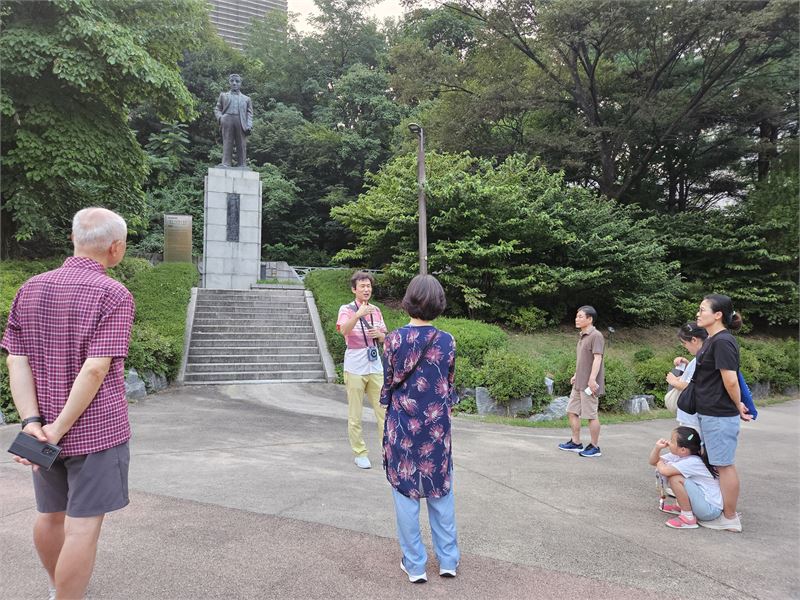 6시가 훌쩍 넘었어도 여전히 30도 넘는 무더위가 기승을 부렸던 8월 12일. 서울 중구 장충단 공원에 사람들이 삼삼오오 모이기 시작했다. 폭염에도 20여 명의 남녀노소가 모인 이유는 서울 중구청 문화관광과에서 마련한 제79주년 광복절 기념 <장충단 호국의 길-해설이 있는 야행>프로그램에 참가하기 위해서다.