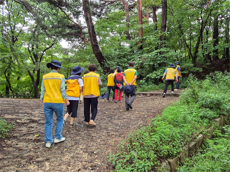 남한산성 둘레길 2코스 모니터링을 하고 있는 남한산성국가유산지킴이