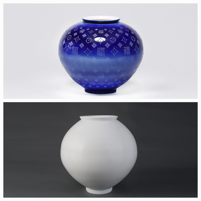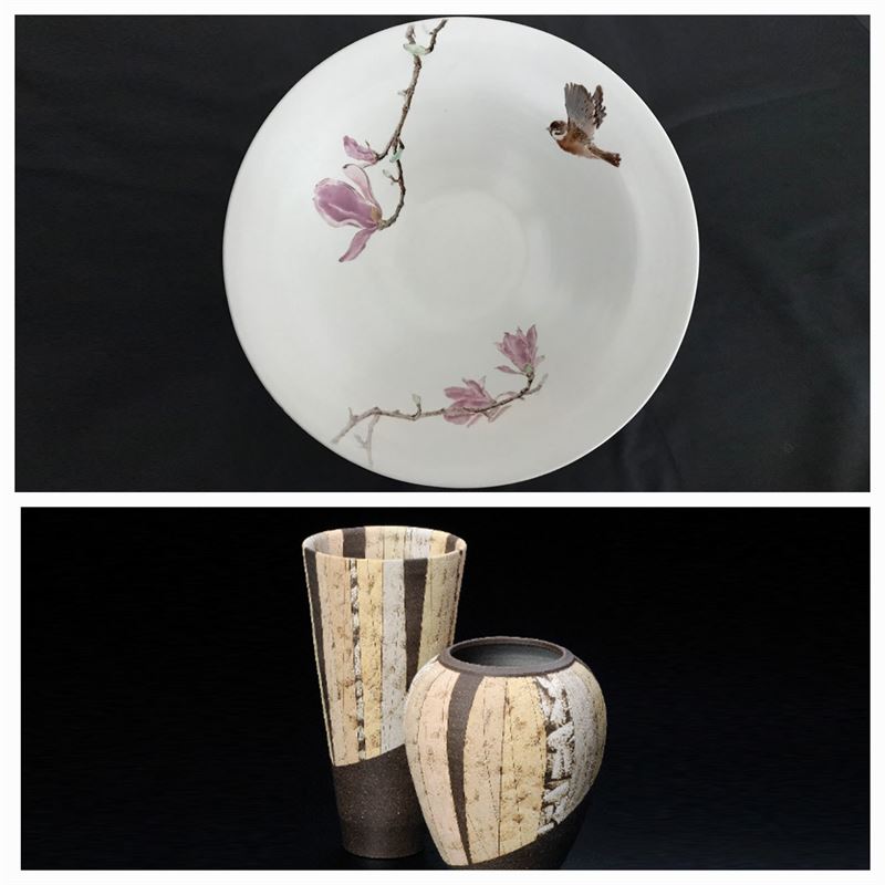 중국의 후 청 작가의 봄(spring)작품(위), 일본의 히로시 키쿠치 작가의 색깔 조각 병 (Color slip jar)작품(아래)
