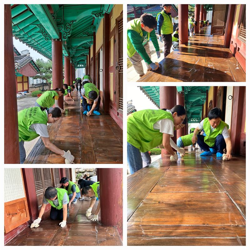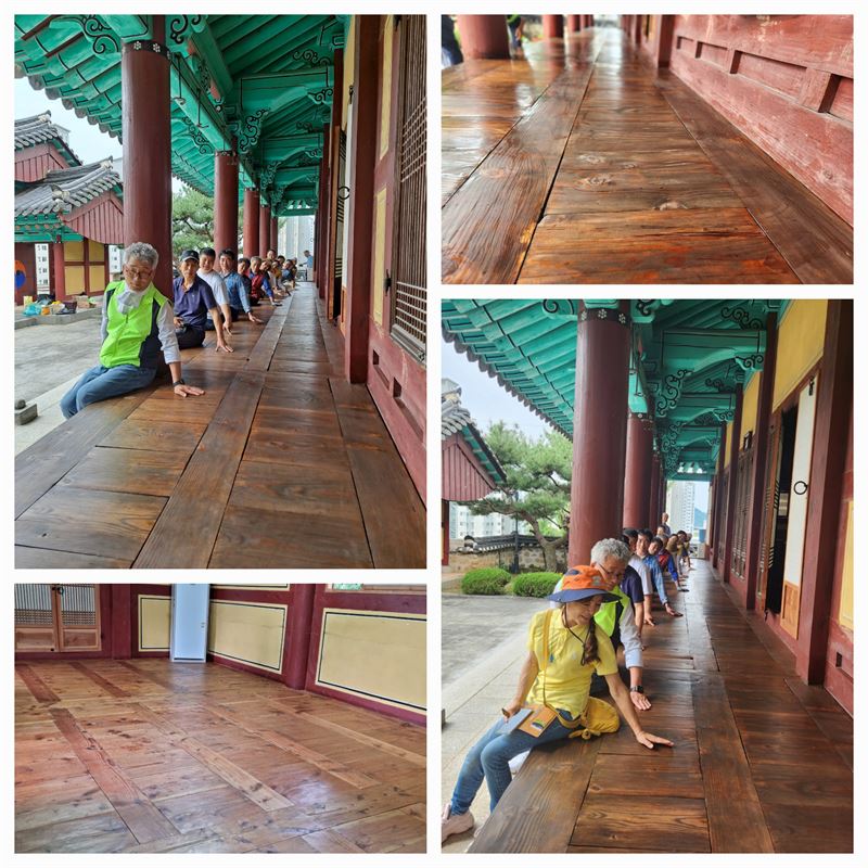 조상의 지혜가 담긴 친환경적인 콩댐작업 후 광택이 나는 마루에서 기아국가유산지킴이들의 기념사진