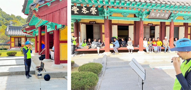 교육 후에는 벽진서원 주변 정화 활동을 실시하며 지역 사회에 대한 봉사 정신을 실천했다. 또한, 2024년 국가유산지킴이 전국대회에서 표창장을 수상한 이형만 고문과 손경모 총무를 위한 특별 공연이 마련되었다. 기아국가유산지킴이 진찬승 부회장의 아름다운 오카리나 연주는 주변 주민들의 발길을 멈추게 하며 훈훈한 분위기를 만들었다.