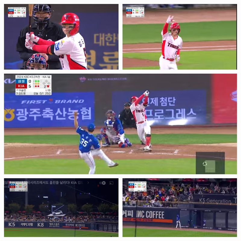 KIA 김도영이 23일 한국시리즈 2차전 2회말 1점 홈런을 때린 뒤 그라운드를 돌고 있는 모습들...