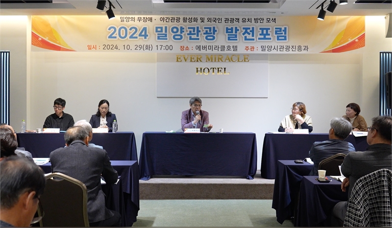 밀양시(시장 안병구)는 지역 현황을 반영한 무장애 관광, 야간관광, 외국인 관광 산업 발전계획을 도출하고, 밀양 관광의 실태와 발전 방향을 모색하고자 지난 29일 산내면 에버미라클 호텔에서‘2024 밀양 관광 발전포럼’을 개최했다.