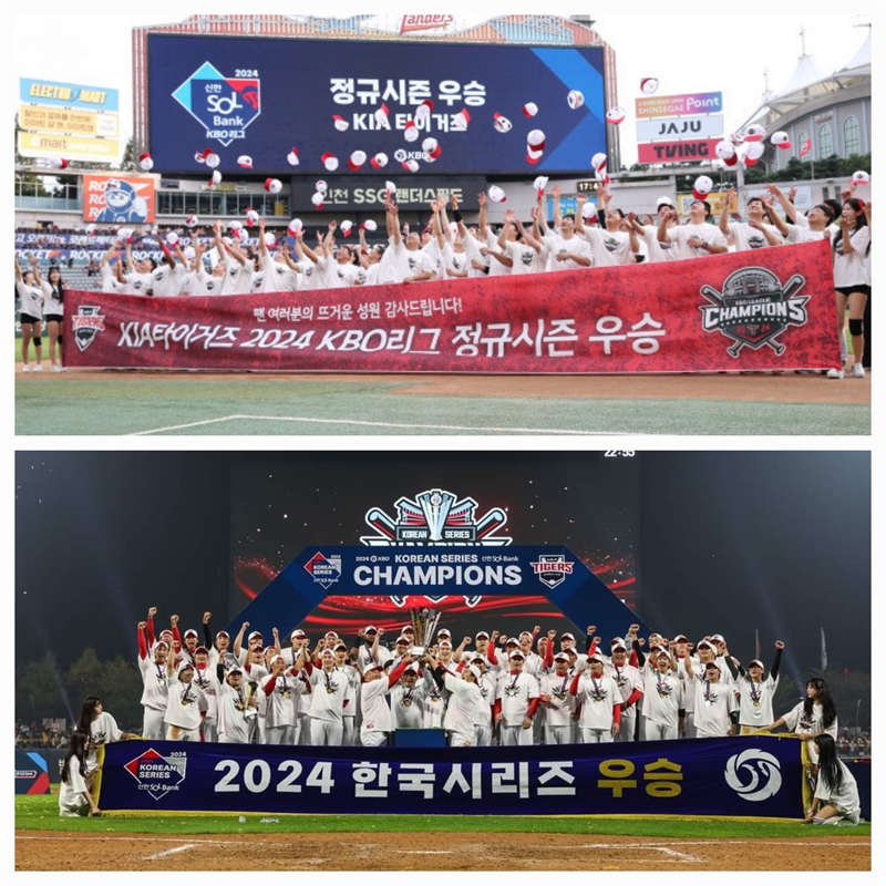 올해는 한국 프로야구 역사에 길이 남을 한 해로 사상 처음으로 1000만 관중을 돌파, 200경기 매진이라는 전무후무한 기록까지 세우며 대한민국 프로스포츠 역사에 새로운 장을 열었다. KIA 타이거즈가 광주 기아챔피언스필드에서 열린 2024 한국시리즈 5차전에서 삼성 라이온즈를 7-5로 꺾으며 시리즈 전적 4승 1패로 우승을 차지했다. 이로써 통산 12번째 우승컵을 품에 안았고, 37년 만에 홈 광주에서 우승의 감격을 누리게 되었다.