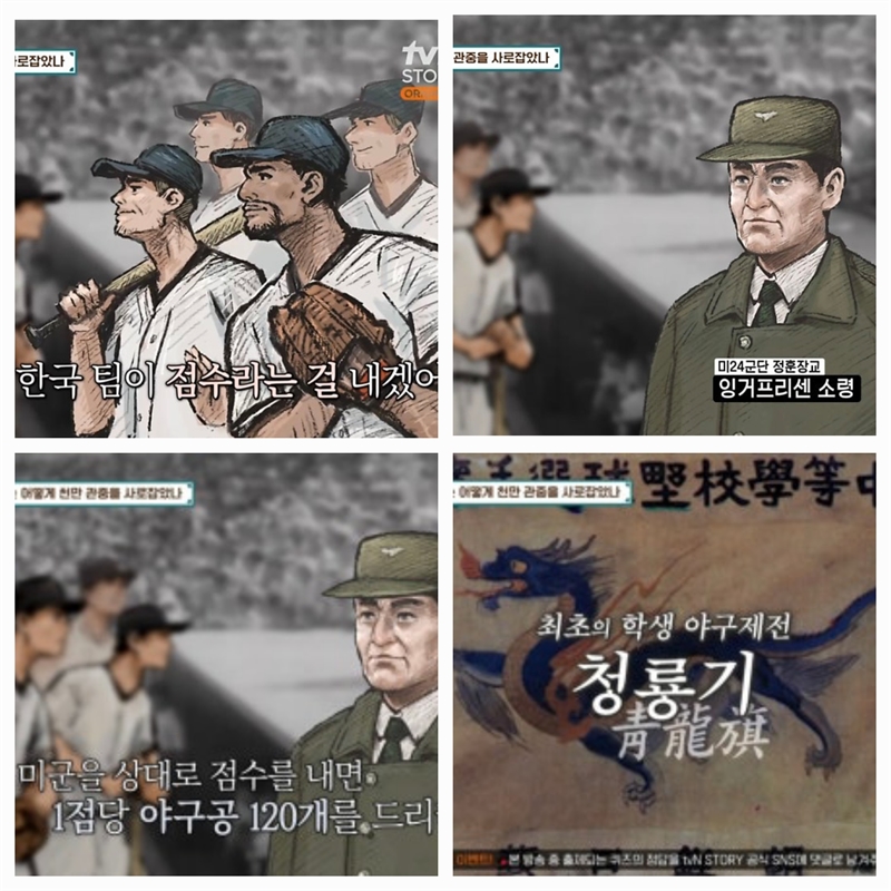 1946년 한국과의 친선 야구경기에서 한국이 한점 이라도 내면 야구공을 제공하겠다고 제안을 했던 잉거프리센 소령과 이때 받은 공으로 청룡기 야구가 시작되었다(사진제공 TVN)