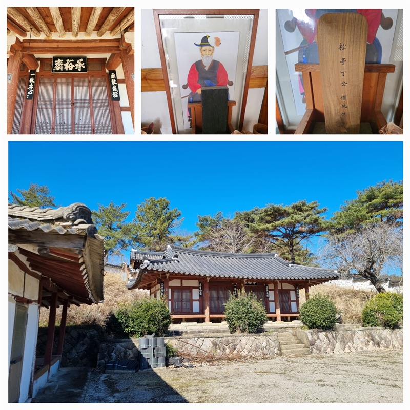 전라남도 고흥군 포두면 길두리 안동마을에 있는 압해정씨(영광정씨) 불우헌공파 8위의 신위를 모신 안동사 승유재, 정걸장군 영정, 위패의 모습