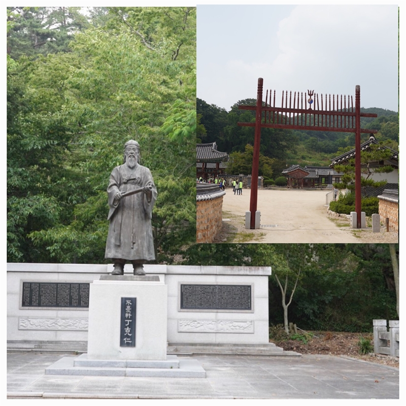 정읍시 칠보면 무성리 원촌 마을 입구에 있는 정극인 동상과 시비, 무성서원 입구 전경
