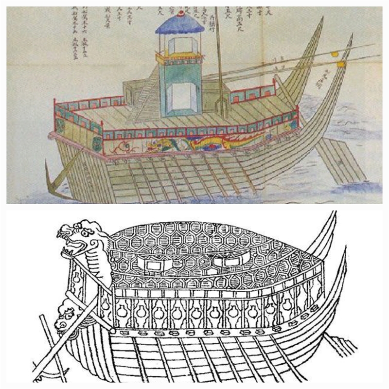 1555년 정걸 장군이 처음으로 건조해 사용한 조선의 판옥선과 거북선 도안(사진제공 네이버검색)