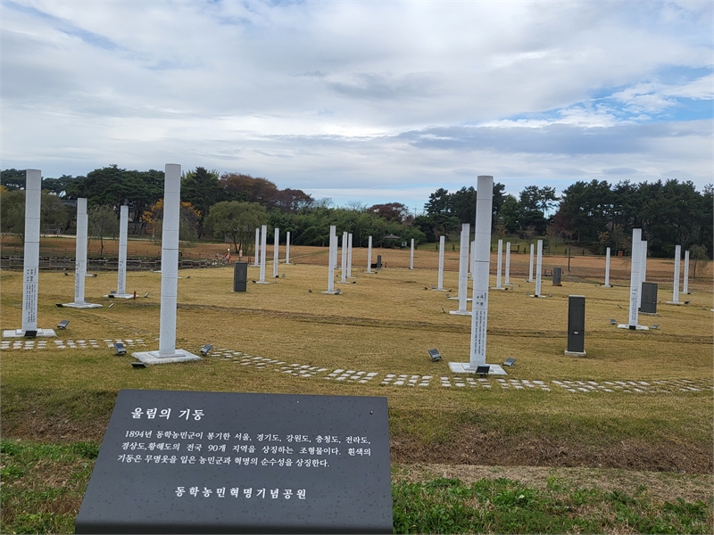 ◆광주문화유산지킴이가 찾은 황토현전적지는 전북 정읍시 덕천면 하학리와 도계리 사이 위치한 해발 35.5m의 언덕으로, 1894년 동학농민군이 관군을 상대로 최초 전투를 벌여 최대 승리를 거둔 장소이며 1981년 12월 사적 295호로 지정됐다. 이 일대에 2014년부터 모두 324억 원의 예산을 투입해 30만 1329m² 규모로 기념공원이 조성되었다. 이곳에는 동학농민혁명기념탑, 교육관, 기념관, 사발통문 광장 등과 동학농민혁명기념일을 기념하여 새로이 조성된 전시관, 추모관, 체험관 등이 있으며 특히 전국 90곳에서 일어난 동학농민군을 상징하는 90개의 '울림의 기둥'이 세워져 있다.