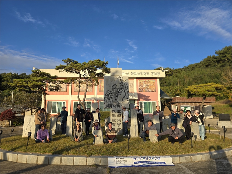 ◆ 광주문화유산지킴이 회원들은 갑오년 동학농민혁명의 현장에서 동학농민혁명의 전개과정을 알아보며 모두가 평등한 세상을 생각하는 시간을 가졌다.