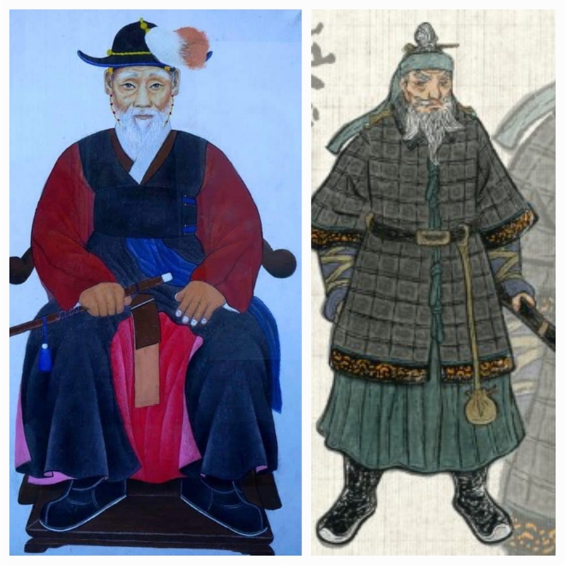 송정 정걸 장군의 영정과 정걸 제독의 오연 작가 그림(사진제공 네이버 검색)
