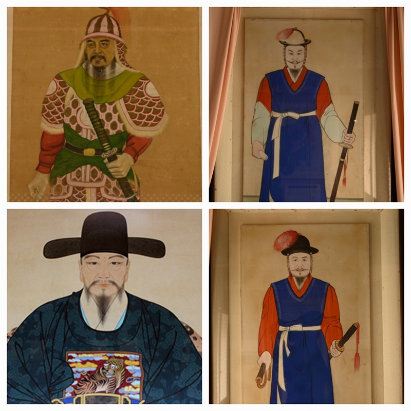 위의 왼쪽부터 충무사 이순신장군 영정/ 충무사 영당에 모셔진 정우 영정/ 나대용 장군 영정/ 충무사 영당에 모셔진 송희립 영정
