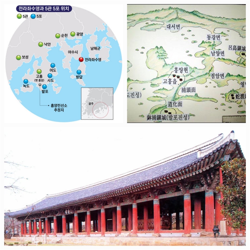 전라좌수영의 5관 5포 위치 지도/ 전라좌수영의 진남관 전경