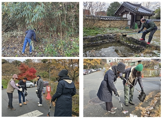 만주사 연못과 주변정화활동을 하고 있는 모습