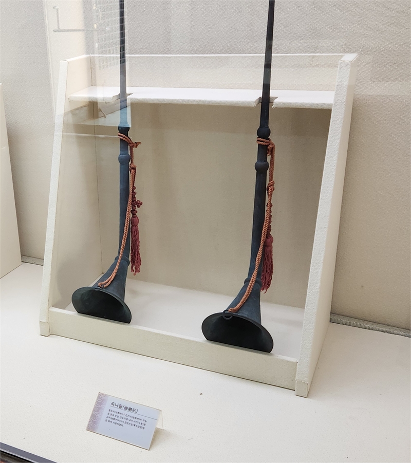 ◾️ 곡나팔(曲喇叭, 출동 또는 접전 시에 사용)은 구리로 만든 나팔로, 목이 구부러진 모습이라 곡나팔이라고 한다. 나팔 입은 퍼졌고 붉은 술을 달았다.