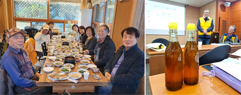 이어진 송년회에는 산성내 식당에서 회원들 간의 화합을 다지고 한 해 동안의 노고를 격려하는 훈훈한 시간이 이어졌다. 회장은 깜짝 선물로 회원들에게 직접 마련한 들기름을 전달하며 감사의 마음을 전해 분위기를 한층 따듯하게 만들었다.