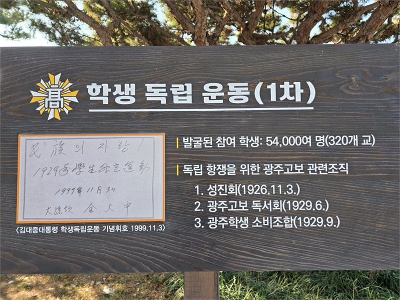 광주학생독립운동 1차 조사 기념 김대중대통령 휘호