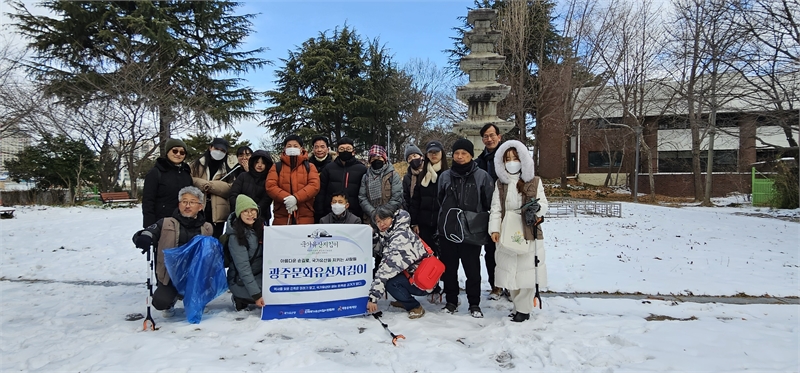 일주일 동안 계속 내린 폭설로 광주시민은 힘든 날들이었다. 다행히 광주문화유산지킴이 활동이 진행되는 일요일은 눈도 그치고 햇볕까지 쨍쨍하다 기온은 차지만 체감온도는 좋은 날이다. 회원들과 시민 등 20여 명이 참여하여 광주공원, 관덕정, 사직공원을 탐방하며 지킴이 활동을 실시하였다.