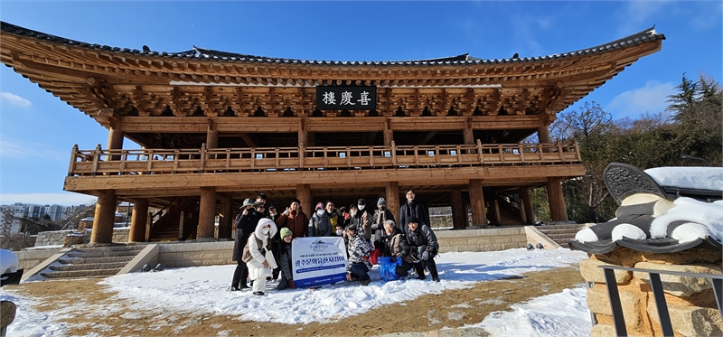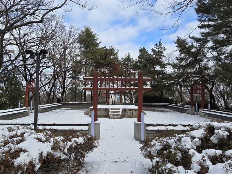 ◆ 일제강점기 때 구공원이라 했던 광주공원을 하얀 눈길 싸목싸목 걸으며 국가유산을 만나보고 2023년 9월 복원된 희경루에 올라서니 찬바람이 매섭다. 역시 누각은 여름에 찾아햐 할 곳이다.