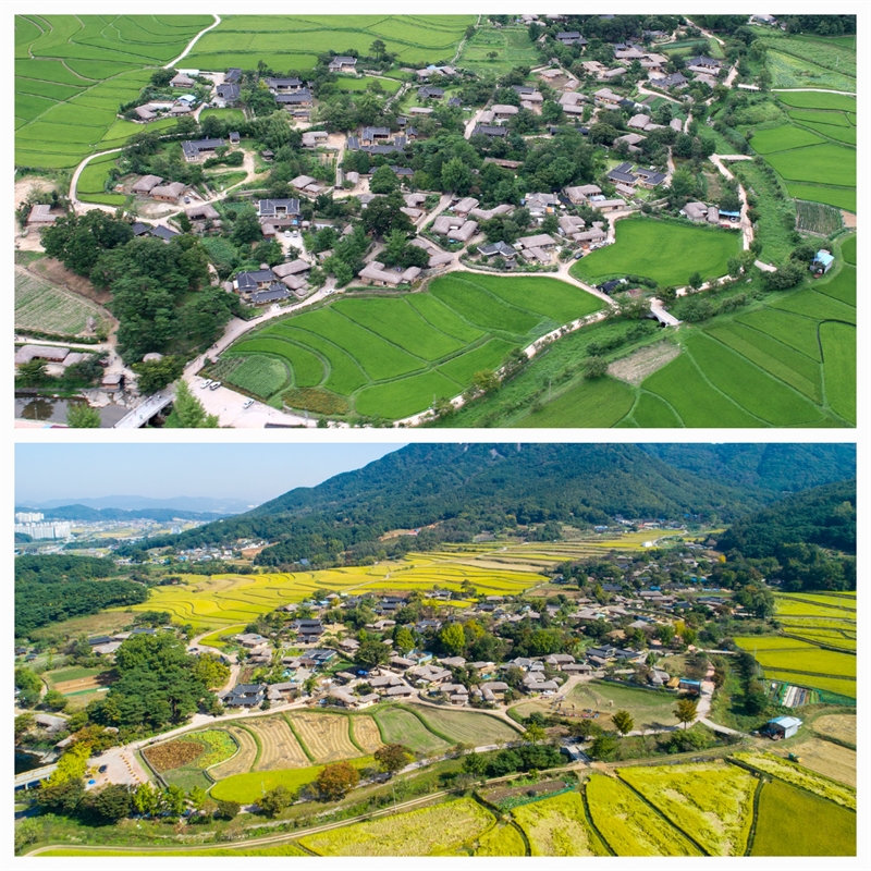 하늘에서 바라본 아산 외암민속마을의 전경