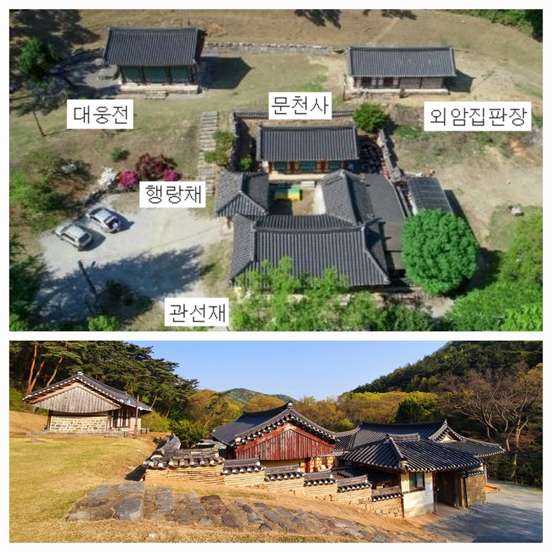 외암 이간과 천서 윤혼의 제사를 지내는 사당이자 외암유고 목판을 보관하는 문집판각, 관선재, 문천사의 전경