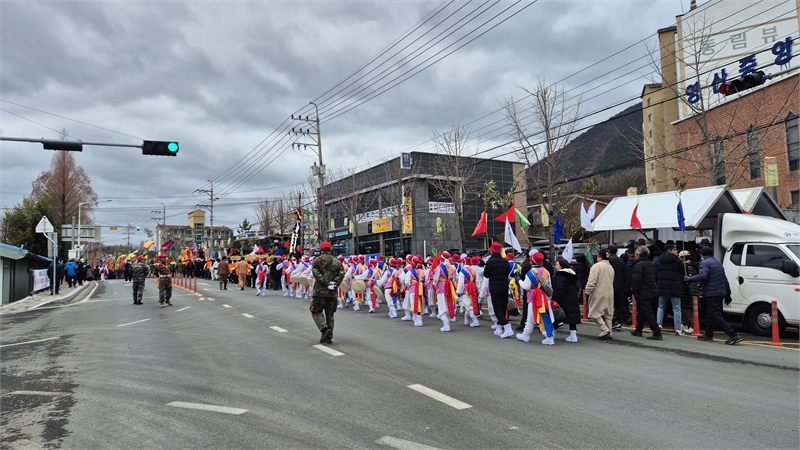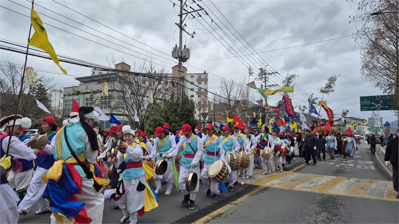 제 64회 3 · 1 민속 문화재 영산 줄다리기 서부팀이 행진을 하고 있다