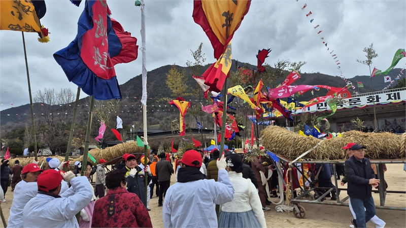 대장을 중심으로 줄걸기를 하고 풍물단의 신들린 풍물치기가 분위기를 고조시킨다