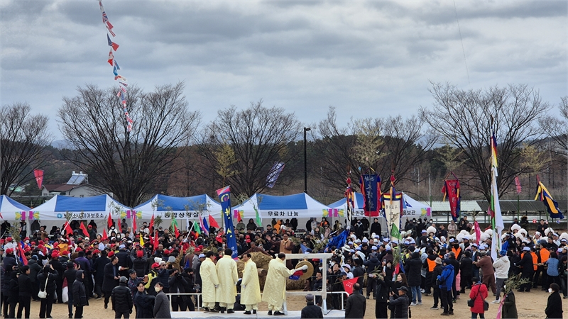 고사를 지내고 고사장에서 행사장으로 줄나가기 장면