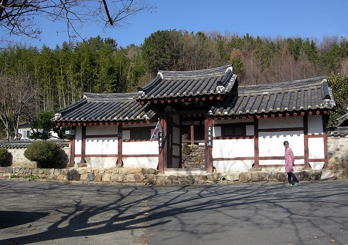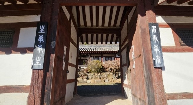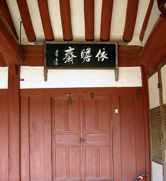 정당 맞은편 입구의 대문채는 고자사(庫子舍)를 겸용하는 건물로 좌우에 행랑방과 부엌이 각각 붙어 있으며, 가운데에 우뚝 솟은 삼문(三門)의 형식을 갖추고 있다. 의첨재로 들어가는 대문 기둥에는 ‘생사사생(生事事生), 성사사성(省事事省)’이라는 예서체(隷書體) 글귀가 걸려 있다. 명심보감(明心寶鑑)의 존심편(存心篇)에 나오는 글로 ‘일을 만들면 일이 생기고, 일을 덜면 일이 없어진다.’라는 뜻이다.