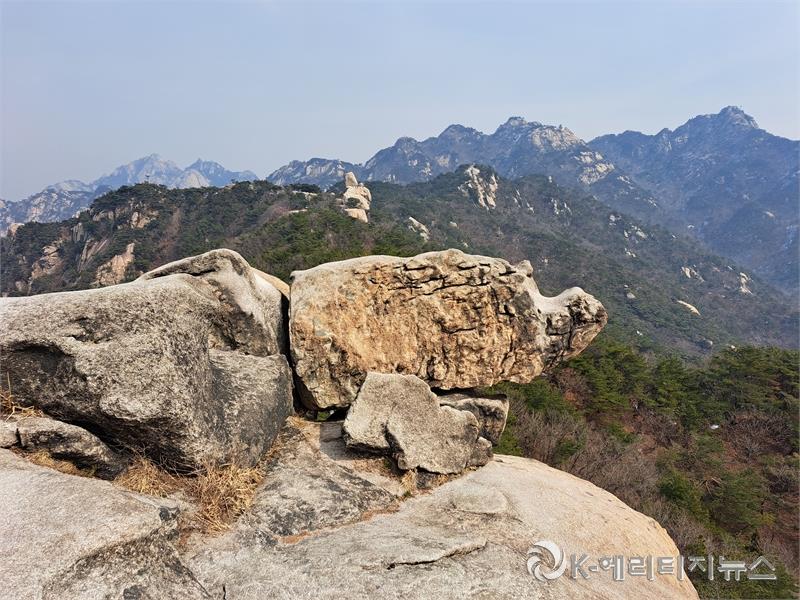 ▲ 코뿔소 바위, 비봉으로 올라가는 길에 볼 수 있는 관광 명소다. ⓒ 김희태