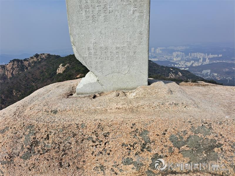 ▲ 훼손이 심한 북한산 신라 진흥왕 순수비 옆면에는 김정희가 새긴 명문이 남아 있다. ⓒ 김희태
