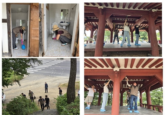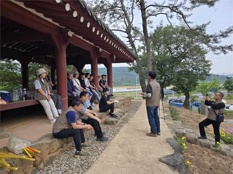 ◆ 국가유산지킴이지도사들은 함께 참여한 10여 명의 시민들과 정자 주변정화활동 팀, 정자 거미줄 제거 및 마루 청소 팀, 모니터링 활동 팀, 화장실 청소 팀으로 나누어 활동을 하였고정자에 앉아 느껴보는 활동을 하였다. 또한 양과동정 홍보하기 위한 나만의 방법을 생각해 보는 시간을 갖고 비석에 홍보팁을 담기도 하였다.