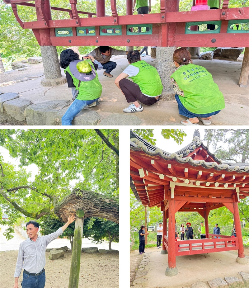 이형만고문의 모니터링(만귀정 마루하단에 목재상황, 왕버들나무 가지 밭침, 처마에 단청 및 페인트