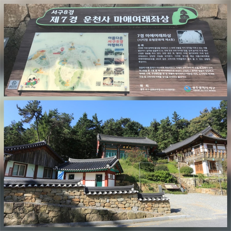 백석산(白石山) 자락에는 한국불교 태고종(韓國佛敎 太古宗) 소속의 운천사(雲泉寺)가 자리하고 있으며, 이곳은 광주광역시 유형문화유산 제4호이자 서구 8경 중 7경인 운천사마애여래좌상(雲泉寺磨崖如來坐像)을 품고 있어 더욱 의미가 깊다. '암벽에 새겨진 부처의 앉은 모습'을 뜻하는 마애여래좌상은 원효대사(元曉大師)와 얽힌 전설이 전해지지만, 실제로는 고려시대에 조성된 것으로 추정된다. 운천사마애여래좌상(雲泉寺磨崖如來坐像)은 급변하는 도시 환경 속에서도 옛 정취와 역사를 오롯이 간직하며 광주 시민들에게 도심 속 휴식과 사색의 공간을 제공하고 있다. 바쁜 일상 속에서 잠시 멈춰 서서 이 지역의 오랜 이야기와 아름다운 유산을 느껴보는 것은 어떨까?