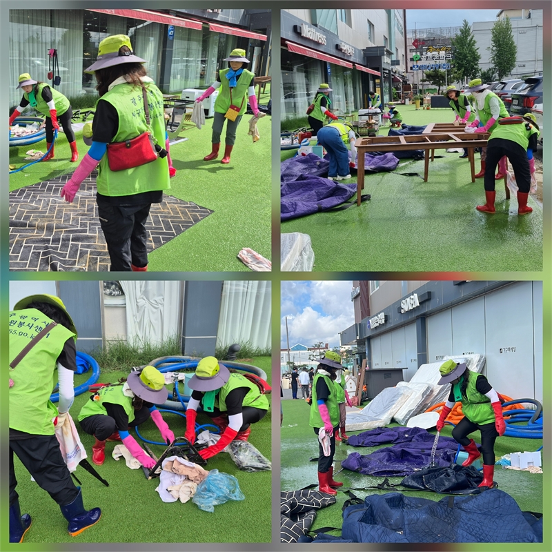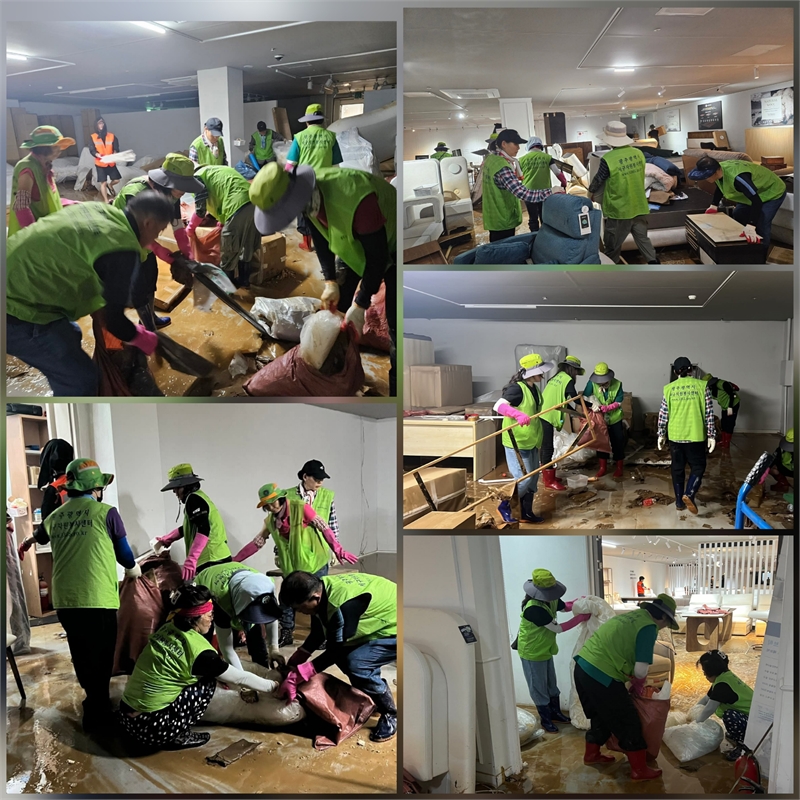 기록적인 폭우에 역대급 침수 피해를 입은 광주광 역시 서구 마륵동 다스리가구백화점 일대에서 수 해복구 작업에 참여해 구슬땀을 흘리고 있는 기아 국가유산지킴이 회원들의 모습들...