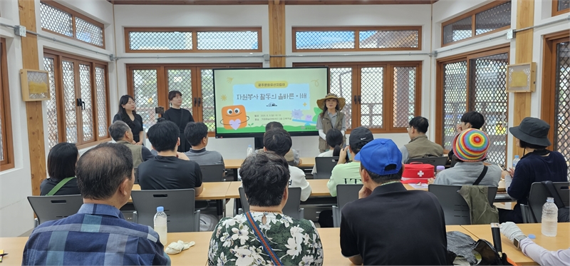 플로킹을 하며 양림동 근대유산을 돌아보고 난 후 남구자원봉사센터 강선희 선생님으로부터 자원봉사활동의 의미를 알아보고 진정한 자원봉사활동이 무엇인지 참여자들의 마음을 뭉클하게 하였다.