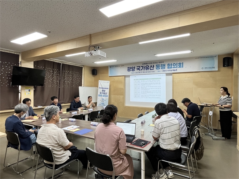 회의에는 수년간 광양 국가유산을 소재로 다양한 프로그램을 운영해온 국가유산 활용단체와 관계자들이 참석했다. 광양문화원, 광양향교, 광양궁시전수교육관, 참교육학부모회 광양지회, 협동조합광양, 광양지역사연구회, 문화해설사, 시 관계자 등은 교육기관과 지역 사회에서 활용할 교재 제작·배포에 앞서 자료를 취합하고, 광양 국가유산의 적극적 활용 방안을 논의했다.