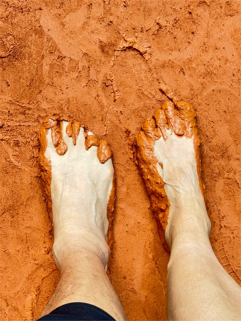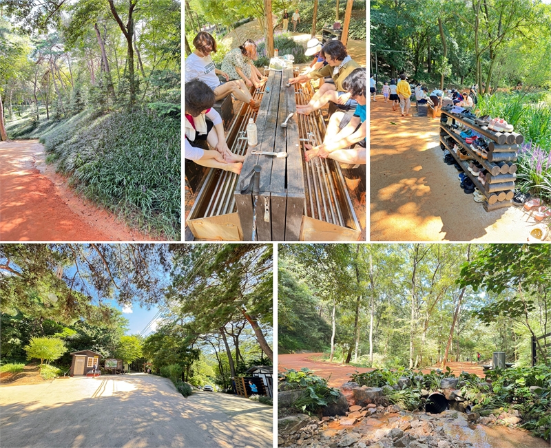 황토의 따뜻한 기운을 발바닥으로 느끼며 걷는 2km 황톳길은 ‘질퍽한 구간(0.6km)’과 ‘마른 구간(1.4km)’으로 나뉘어 있다. 신발을 벗고 흙을 밟는 순간, 사람들은 일상의 무거움에서 벗어나 새로운 활력을 얻는다.