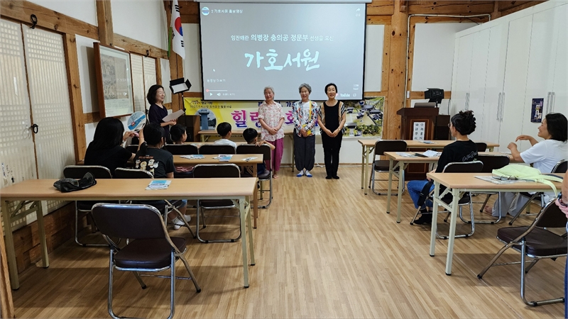 경남 진주에 있는 가호서원 논어학교(교장 정기민)는 8월 16일과 17일 1박 2일 동안 북관대첩 국국영웅 충의공 정문부 선생을 모신 가호서원에서 어린이와 어머니, 조모 등 20명이 참석한 가운데 ’힐링문화 캠프’ 9회차 행사를 개최했다.