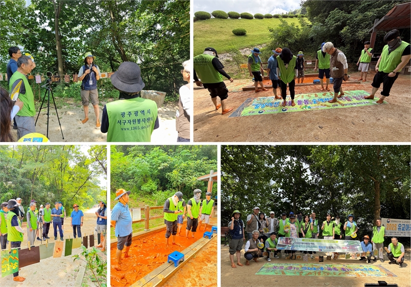 콩댐 체험 후에는 서구8경 중 제2경인 금당산 숲길이 기다리고 있었다. 황토맨발길을 걸으며 발바닥에 전해지는 흙의 기운을 느끼고, 황토를 물감 삼아 면봉을 붓처럼 사용해 그림을 그려보는 특별한 체험은 참가자들에게 힐링과 즐거움을 동시에 선사했다.