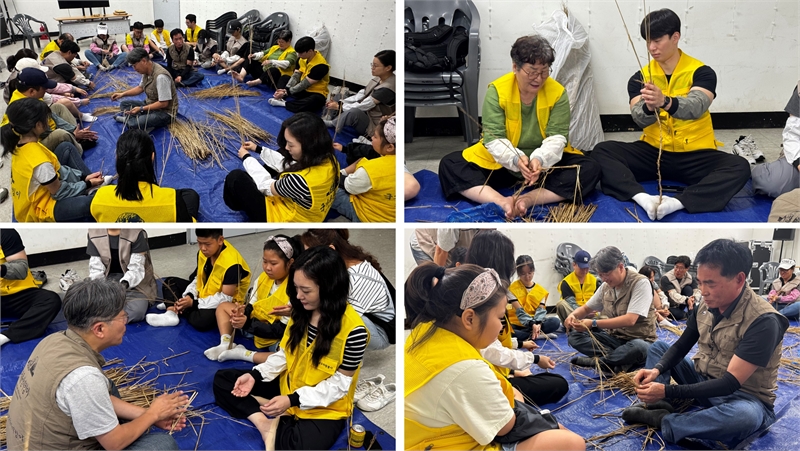 특히, 기아국가유산지킴이 이형만 고문의 안내로 진행된 새끼꼬기 체험은 청소년들에게 큰 호응을 얻었다. 서툴고 어색했던 첫 시도는 금세 웃음과 집중으로 바뀌었고, 반복된 손놀림 속에서 조금씩 완성되어가는 새끼와 짚솔을 바라보며 “우리 선조들이 이렇게 직접 생활 도구를 만들었구나” 하는 감탄이 이어졌다.