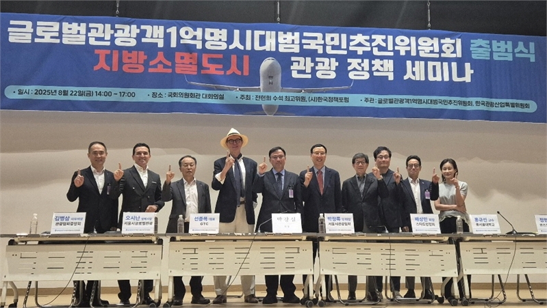 대한민국이 글로벌 관광객 1억 명 시대를 준비하기 위한 「글로벌관광객1억명시대범국민추진위원회(GTC)」가 공식 출범하였다. 2025년 8월 22일 국회의원회관 대회의실에서 열린 출범식 및 관광정책 세미나는 400여 명의 관계자와 전문가가 참석한 가운데 성황리에 진행되었다.