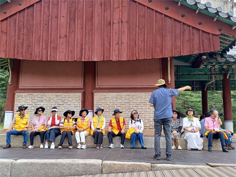 여주시 문화관광해설사의 문화해설을 청취하고 있는 남한산성국가유산지킴이