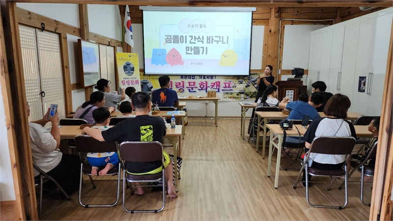첫날 오후 3시부터 진행한 행사는 ▷윤광운 부장의 행사소개와 안전교육 ▷정기민 교장이 알려주는 충의공과 북관대첩 및 국가문화유산 ▷양수영 강사가 진행하는 한복 및 다도예절 체험 ▷박준영 마술사가 진행하는 다양한 마술공연 ▷심재운 강사가 진행하는 부모와 함께하는 전통놀이 ▷의병밥상 저녁식사 ▷참여소감 나누기, 자유시간, 취침 순으로 진행했다.