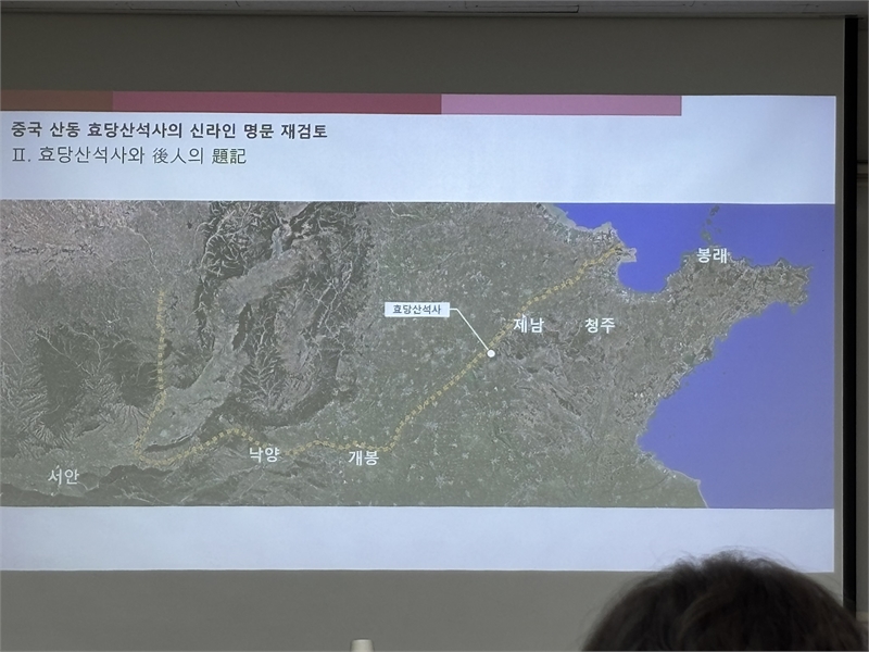 첫번째, 최희준(국민대)의 「중국 산동 효당산석사의 신라 관련 명문 재검토」는 팬데믹 시기에 한국사 관련 명문이 존재하는 것으로 알려졌으나 깊이 있게 다뤄지지 못한 효당산석사(孝堂山石祠)를 소개하고 그곳에 새겨진 한국사 관련 8건의 명문을 재검토했다. 중국 산둥성 지난시 효당산 정상에 위치한 효당산석사는 후한 초인 1세기 무렵에 무덤 곁에 세운 사당인데, 내부에 복희와 여와, 공자와 노자 등의 다양한 인물 고사를 그림으로 새긴 화상석(畫像石)으로 유명하다. 그런데 이 사당은 6세기 후반부터는 유명한 효자 곽거(郭巨)의 묘로 알려져 유명세를 탔고 후한시대에서 청나라에 이르기까지 방문객들이 남긴 명문이 150건이 넘게 확인되고 있다.